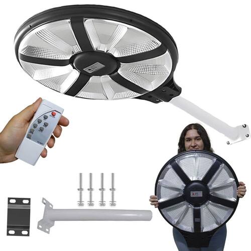 Ilumine qualquer ambiente, público ou particular, com a Luminária Refletor Solar em formato de OVNI, desenvolvida para oferecer máxima eficiência e ampla cobertura. Seu design circular garante um ângulo de iluminação de 360 graus, tornando-a perfeita para ruas, pátios, estacionamentos, chácaras, áreas externas e muito mais.