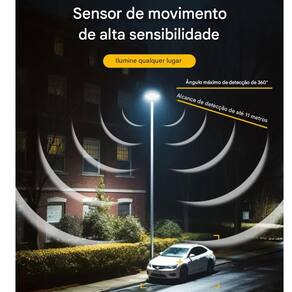 Equipada com painel solar integrado, ela carrega automaticamente durante o dia e funciona totalmente sem fios, proporcionando economia e praticidade. Conta ainda com sensor de movimento e 3 modos inteligentes de operação, permitindo ajustar o funcionamento conforme a necessidade: