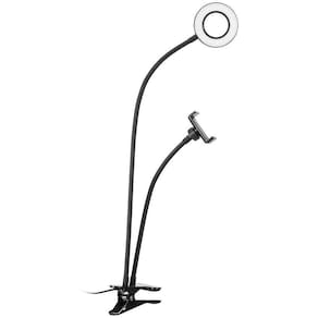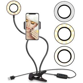 Luminária Ring Light + Youtuber Suporte Celular Selfie O suporte é perfeito para aqueles que já se cansaram de segurar o telefone. Navegar pela internet, assistir Netflix, gravar vídeos para o Youtube ou qualquer outra tarefa de telefone intensivo que deixam seus braços cansados depois de um tempo e simplesmente não é confortável por longos períodos de tempo. Este suporte de telefone fica apoiado em seu pescoço para que você obtenha a melhor visão enquanto estiver assistindo ou navegando na internet. Nunca mais tenha braços cansados. Adapta-se a qualquer telefone. Ajustável para obter a melhor posição. As possibilidades são infinitas Suporte Giratório A peça do suporte do telefone pode ser ajustada para ficar na melhor posição. Também tem um botão para apertar seu ajuste, dando-lhe a posição mais confortável. Estrutura flexível e ajustável O eixo é totalmente flexível e você pode criar formas incríveis, como suportes ou bastões de selfie com ele. É realmente um braço de soluções que pode se moldar em vários formatos úteis que melhorarão e muito a forma que você utiliza o seu telefone. Compatível com todos os tipos de celulares Informação técnica: Material: ABS Dimensões: Suporte Pescoço: Estendido fechado 60cm Suporte Celular: Comprimento/Aberto: 18cm x Comprimento/Fechado: 12cm x Altura 6,5cm Compatível com aparelhos Samsung, Iphone, Motorola entre outras marcas. Projetado com duplo grampo e o dobro de segurança para seu aparelho. Com o suporte articulado flexível pescoço de ganso, você pode ajustar livremente o melhor ângulo de visão, inclusive gira 360 graus. O grampo de fixação tem abertura máxima 9.4 cm, interior macio com almofada de borracha para fornecer a segurança extra para seu aparelho. Pode ser utilizado na cama, na mesa, na cozinha, no escritório e em qualquer superfície onde possa prender o grampo, ou seja, você irá fixá-lo em qualquer lugar que queira ficar. Dimensões aproximadas: Braço flexível: 70 cm Gancho da mesa abertura máxima: 7.4 cm Prendedor celular abertura máxima: 9.4 cm Homologação Anatel: 136132205567 Ean: 7865566604863