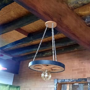 Adquira agora mesmo a Luminária Roda de Carroça 1 Bocal 35 cm Diâmetro 110/220 V e deixe sua casa ainda mais bonita e iluminada. Não perca essa oportunidade!