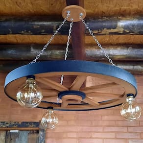 Bem vindo Crie inove e encante! A nossa linha de Moveis não para de crescer e agora traz para você, esta linda peça para organizar diversos ambientes da casa. Esta peça com certeza vai deixar a sua casa mais bonita! Luminária roda de carroça REPLICA RUSTICO, fabricado em MDF e pintado a Mão. Envernizado deixando um acabamento envelhecido perfeito. Bom para iluminar e decorar ambientes como áreas de garagem, churrasco, garagens com bar, casa, chácara decorar festas, lanchonetes, casa de campo, pousadas. :::Especificações Técnica::: ::: ACOMPANHA FIAÇÃO ::: ::: ACOMPANHA FIAÇÃO ::: : CARACTERÍSTICAS: - Marca: Eco - Dimensões: - Diâmetro 65 CM - Peso do Produto 3 kg - Bocais 3 - kit NÃO - Material: MDF (MEDIUM DENSITY FIBERBOARD) - MDF Ecologicamente Correto com Certificado FSC de alta qualidade - Cor: Mogno, Tabalo - Borda em MDF 3MM - Nível de Instalação: Fácil - Garantia de 90 dias Contra Defeitos de Fabricação :::CONTEÚDO DA EMBALAGEM::: - Ganchos SIM - Soquetes SIM - Base para Teto SIM - Corrente 60 cm - Fios SIM - Lâmpadas NÃO :::ATENÇÃO::: OBS: Fazemos em tamanhos personalizados também. Consulte-nos! Todos os nossos produtos são feitos à mão e nos esforçamos para lhe entregar o mais rápido possível. :::SOBRE A COMPRA::: :Envio: O prazo começa a contar após a aprovação da compra. Será enviado código de rastreio logo após a postagem do produto. :::ANTES DE COMPRAR Tire todas as suas dúvidas no campo perguntas e respostas do vendedor. * Os objetos decorativos não acompanham o produto* Fique à vontade para nos fazer perguntas. PERGUNTAS FREQUENTES OS PRODUTOS SÃO NOVOS? Sim! Todos os nossos produtos são novos. OS PRODUTOS TÊM GARANTIA? Sim, todos os nossos produtos têm garantia de fábrica. (3 meses) QUAL A VOLTAGEM? A voltagem depende da lâmpada 100/220 v ACOMPANHA AS LAMPADAS? As lâmpadas não acompanha o produto Aguardamos sua um compra, é sempre prazer atendê-los Marca: ECO.START