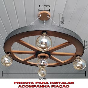 Luminária roda de carroça 5 bocal 65 cm 110/220v kit 3 peças Bem vindo a eco.Mercadoshops