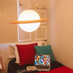 A Luminária Saturno Rings traz o segundo maior planeta do sistema solar para iluminar e decorar de forma pendente qualquer ambiente escolhido. Por possuir boa intensidade de luz, a Luminária Saturno Rings pode ficar ligada a noite, sem atrapalhar ou prejudicar o sono. ; ;