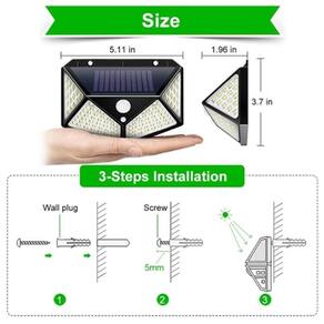 Aproveite os benefícios da energia solar e ilumine sua área externa com qualidade, segurança e economia com a Luminária Energia Solar Parede 100 Led Sensor 3 Funções. Garanta já a sua e desfrute de uma iluminação eficiente por até 12 horas.