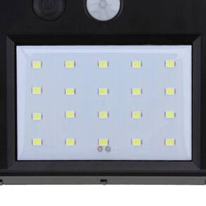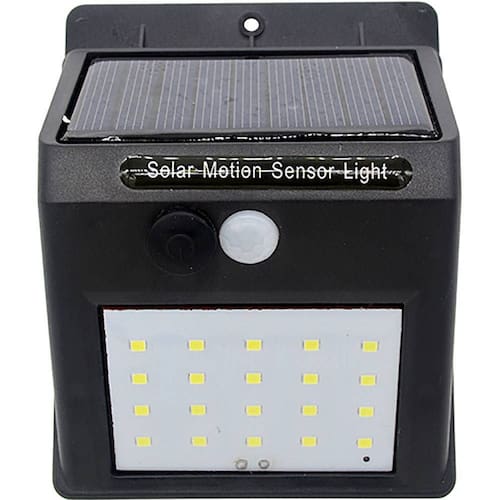 Luminária solar com detetor de movimento e acendimento automático acionada pela intensidade de luz ambiente. Com autonomia de até 12 horas, grande intensidade de luz, é destinada a áreas externas ja que é a prova de água. Economia, praticidade e segurança em um mesmo produto. Esta luminária ativa quando anoitecer e permanece desligada até o acionamento pelo sensor de movimento, sendo ideal para balizamento de caminhos, jardim, corredores, etc. Material: ABS Sensor de iluminação: 0,55Watts sensor de luz Solar de Energia: 2,4 Watts, 270 lumens Fonte de energia: Solar 20 LEDs SMD2835 Potencia de iluminação: 4 watts bateria: 3.7 V 18650 1200 mah Painel Solar: 6 V/1 W proteção em Nível: IP65 Distância de detecção: 7 m Autonomia de iluminação: 12 horas tempo de vida do led: 50000 h Tipo de instalação: Fixado Na Parede o chão Interruptor: Botão Sensor de movimento ângulo: 120º Interruptor on/off Tamanho do produto: 124x95x48mm Tamanho da embalagem: 13x10x5cm Peso: 0.15 kg Inclui parafuso e bucha fita dupla face
