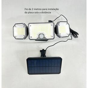 Luminária Solar Sensor e Controle Remoto 380 LEDs 3 Cabeças