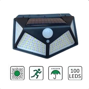 Especificações: Potência: 20w Luminosidade: 600lm Quantidade de leds: 100 Ângulo de iluminação: 270º Ângulo do sensor de presença: 120º Fonte de alimentação: solar Distância do sensor: 3-5m Classe de proteção: ip65 Material: abs Autonomia da bateria: 1200mah Cor do led: branco frio Tempo de uso: até 10h Tempo de carregamento: 2 - 7h no sol Resistente à água