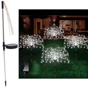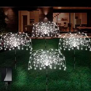 Luminária Solar Jardim Decoração LEDs Branco Fogos Artifício -
