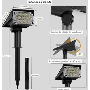 Chegou o melhor e mais potente luminária solar world-lar , decore jardins, fachadas, casas de praia, chácaras, sítios calçadas, decks, condomínios e muito mais em qualquer ambiente externo sem gastar dinheiro com energia elétrica , 100% energia solar. Cor : branco quente Material em abs clasificação ip65 resistente a chuva, granizo e vene. Foco luminoso de alta potencia. Recarrega durante o dia e acende ao anoitecer automaticamente fotocélula 10 led de alta potência. Dois modos de iluminação. forte 100 % de sua força , fraco 50% de sua força mais econômico Bateria de alta capacidade, 3,7v2000 mah 18650 li-on battery Autonomia de 8h até 12h. 2 modos de fixação gramado e parede . Altura: 45cm com estaca. Largura da luminária 9cm Profundidade 14cm Ajuste do ângulo 180grau. 1 ano de Acompanha acessórios e . Marca: Não Informado Ean: 7890018445282