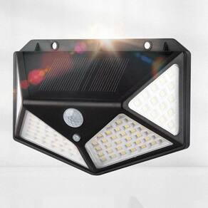 Material: ABS Sensor de iluminação: 0,55Watts Fonte de energia: Raios Solares 100 LEDs SMD2835 Potencia de iluminação: 20 Watts em LED, equivalente a 150 Watts incandescente. Painel Solar: 5.5V 1.43W Proteção em Nível: IP65 Distância de detecção: 4 m Tempo Ligada ao detectar movimento: 20 Segundos Tempo renova a cada novo movimento Tempo de vida do LED: 50000 h Cor dos LEDs: Branco frio Tipo de instalação: Fixado Na Parede Interruptor: Botão branco menor Medidas: 13,5cm x 9,6cm x 5,5cm Sensor de movimento ângulo: 120º Interruptor on/off