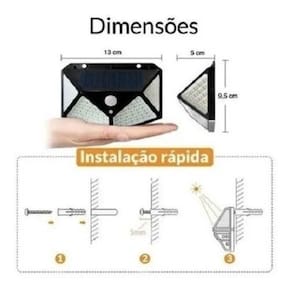 Luminária Solar Parede 100 led Sensor Presença Com 3 Funções super led