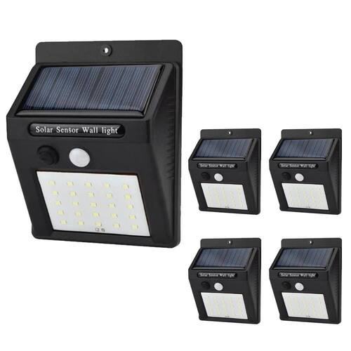 Luminaria Solar Parede 25 Leds Sensor de movimento Energia Lampada luz externa Luminária solar com detector de movimento e acendimento automático acionada pela intensidade de luz ambiente. Com autonomia de até 12 horas, grande intensidade de luz, é destinada a áreas externas já que é a prova d´água. Economia, praticidade e segurança em um mesmo produto. Esta luminária ativa quando anoitecer e permanece desligada até o acionamento pelo sensor de movimento, sendo ideal para balizamento de caminhos, jardim, corredores, etc. Atenção: Esse Anúncio é referente para kit com 5 unidades Características: Material: ABS Sensor de iluminação: 0,55Watts Sensor de luz Solar de Energia: 2,4 Watts, 270 lumens Fonte de energia: Solar 25 LEDs Potencia de iluminação:10 watts Bateria: 3.7 V 18650 1200 mah Painel Solar: 6 V/1 W Proteção em Nível: IP65 Distância de detecção: 7 m Autonomia de iluminação: aproximadamente 12 horas Produto resistente a água Tempo de vida do led: 50000 h Tipo de instalação: Fixado Na Parede Sensor de movimento ângulo: 120º on/off Conteúdo da embalagem: 5x Luminária Solar Dimensões aproximadas Altura: 12cm Largura: 10cm Profundidade: 5cm 3 Meses de contra defeitos de fabricação 155 Mod: ZEM-31026 Marca: Não Informado Ean: 8142739597092