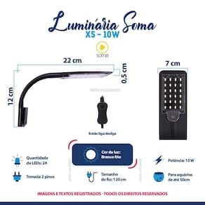 Luminária Soma X5 Luz Branca Aquário Água Doce Fina Led 110V