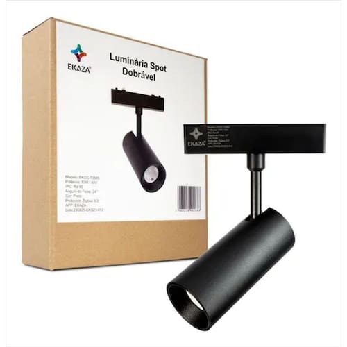 Luminária spot dobrável ekaza zigbee para trilho dimerizável Luminária spot dobrável zigbee ekaza para trilho magnético preto ekgc-t3565 Desfrute de uma iluminação inteligente e personalizável com a luminária spot dobrável zigbee ekaza, ideal para ambientes modernos. A luminária spot dobrável zigbee ekgc-t3565 ekaza redefine a iluminação residencial, combinando um design sofisticado na cor preto com funcionalidades avançadas. Este spot direcional é perfeito para destacar objetos, obras de arte ou criar ambientes personalizados, graças à sua capacidade de ajuste. Integrada com o protocolo zigbee 3.0, garante uma conexão robusta e eficiente com seu sistema de automação residencial. Além disso, seu impressionante índice de reprodução de cor irc ra90 assegura uma fidelidade de cores superior, revelando a verdadeira tonalidade dos seus espaços e objetos. Diferenciais: Controle inteligente e integração perfeita com sistemas de automação via protocolo zigbee 3.0. Compatibilidade ampla com assistentes de voz como alexa e google assistente para comando de voz. Design dobrável e direcional que permite ajuste preciso da luz, ideal para iluminação de destaque. Alta fidelidade de cores com irc ra90, realçando a beleza dos seus ambientes. Função dimerizável para criar a atmosfera perfeita em qualquer momento. Mais sobre o produto: Controle intuitivo através do aplicativo ekaza, oferecendo total controle sobre a intensidade e direção da luz. Com 10w de potência e tensão de 48v, oferece iluminação eficiente e focada. Seu ângulo de feixe de 24 graus é ideal para criar pontos de luz concentrados e impactantes. Dicas de uso: Para a instalação, siga as instruções do manual para garantir a correta integração com seu hub zigbee. Utilize o aplicativo ekaza ou comandos de voz via alexa ou google assistente para ajustar a intensidade e a direção da luz conforme sua preferência. Realize a limpeza da luminária com um pano macio e seco para manter seu acabamento preto e funcionalidade. Ficha técnica: Marca: ekaza Modelo: ekgc-t3565 Cor do corpo: preto Potência: 10w Tensão: 48v Protocolo wireless: zigbee Versão zigbee: 3.0 Temperatura de cor: 3000k - 6000k cct ajustável Ângulo de feixe: 24 graus Comprimento: 10cm Largura: 4,2cm Altura: 11,4cm Diâmetro: 4,5cm Dimerizável: sim Aplicativo de controle: ekaza Compatibilidade: alexa, google assistente Compatibilidade com assistente de voz: alexa, google assistente Aplicativos compatíveis: jwcom, smart, tuya, smart life, novadigital e ekaza : 1 ano contra defeitos de fabricação pelo ekaza Necessário ter ou providenciar a rede wi-fi 2,4ghz, com alta capacidade interna para administração de dispositivos e com boa distribuição do sinal no local. Com a oscilação na conexão do dispositivo, pode acarretar falha na resposta aos comandos via aplicativo, assistentes de voz e não execução de rotinas automáticas agendadas. Consulte um técnico da sua operadora. Atenção: este produto necessita da utilização do hub zigbee para funcionar corretamente.