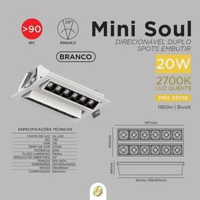 Com um design que combina vários spots em um só, esse destaque único é composto por 12 LEDs integrados de 2700K. Sua iluminação suave cria uma atmosfera aconchegante, enquanto o contraste entre a borda branca e o acabamento preto confere um toque sofisticado e moderno. Este spot não é apenas uma fonte de luz, mas também uma peça de arte que adiciona um efeito elegante e impactante ao ambiente. Deixe o Spot Soul brilhar e transformar seu espaço em um cenário de beleza e estilo.