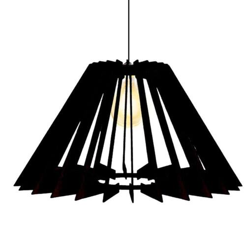 Luminária Teto Tipo Pendente Pirâmide Mdf Completa - Preta Ficha técnica: Altura: 30 cm Largura: 57 cm Diâmetro: 57 cm Espessura: 3 cm Materiais: Madeira MDF Alimentação: Bivolt 110v / 220v Potência: 100 W Ambientes: Exterior e Interior Quantidade de lâmpadas: 1 Tipos de fontes de luz: Soquete E27 Cabo ível e ajustável Material da canopla (peça de acabamento para o teto): Termoplástico Industrial Não é recomendável para lugares sem proteção contra chuva : Desmontado para não ter no , bem fácil de montar