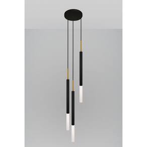 Tudo para iluminar seu ambiente com muito charme Perfeito para todos os ambientes Modelo: pendente Cor es : preto/dourado Material: alumínio com policarbonato Canopla de teto: alumínio 18cm Cabo de alimentação regulável: 1,5m Luminária: 3 soquete g9 Número de lâmpadas: 3 lâmpadas não inclusas Voltagem: 127v/220v Medida: 53 x 2,5 cm Peso líquido: 1,0 kg Conteúdo da embalagem: 1 luminária de teto