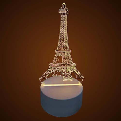 Luminária USB Torre Eifel 3D 20,3x10,2cm Luminaria 3D de LED - Luz Noturna Decorativa com Design Exclusivo Deixe o seu ambiente mais moderno e aconchegante com esta luminaria 3D de LED. Com um efeito visual impressionante, ela e perfeita para decorar quartos, escritorios, salas ou presentear alguem especial. Modelos disponiveis: Unicórnio, Globo Terrestre, Torre Eiffel, Cachorro, Roda Gigante e Clave de Sol. Cada modelo possui detalhes marcantes que ganham destaque com a iluminacao fixa em LED de cor amarela quente. Fabricada em acrilico transparente de alta qualidade com 2mm de espessura, a luminaria oferece um efeito tridimensional unico quando acesa, criando uma atmosfera confortavel e criativa. Especificacoes do produto: Altura total com acrilico: 20 cm Base: 10 cm de diametro x 4 cm de altura Cor da luz: amarela quente fixa nao muda de cor Material: acrilico + base plastica Fonte de energia: cabo USB incluso ou pilhas nao inclusas Conteudo da embalagem: 1 placa de acrilico com o design escolhido 1 base com LED fixo 1 cabo USB do vendedor: 1 mes contra defeitos de fabricacao Ideal para decorar e presentear com estilo e criatividade Marca: Não Informado