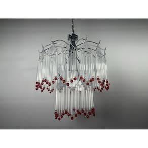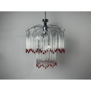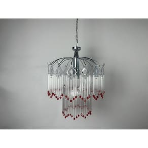 Luminária de vidro pendente para iluminação da sala de estar e quarto - detalhe vermelho Lustre pendente de vidro - base cromada com 2 andares Ilumine e decore com elegância esse lustre de vidro com acabamento cromado é ideal para ambientes como salas, quartos e salas de jantar, oferecendo um toque sofisticado e moderno à sua decoração.