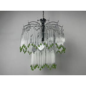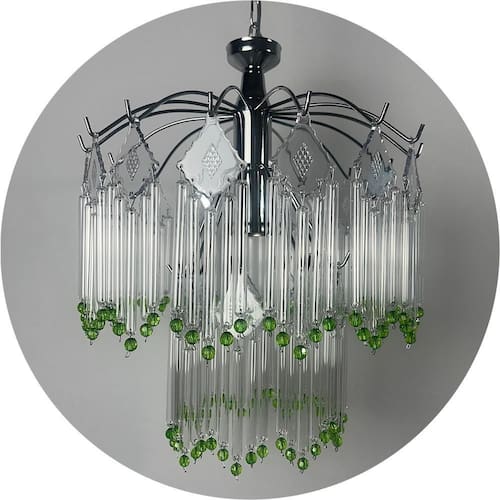 Descrição do Produto Lustre de Vidro com Cristais Acrílicos - Base Cromada com 2 Andares