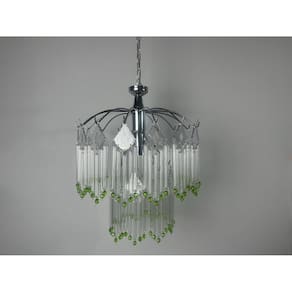 Descrição do Produto Lustre de Vidro com Cristais Acrílicos - Base Cromada com 2 Andares