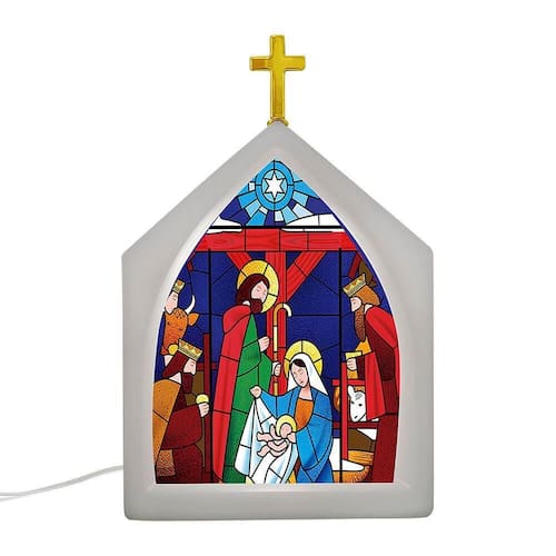 Adicione a Luminária Vitral Capela de Natal em seu altar para agregar a decoração e complementar sua devoção em seu momento de oração.