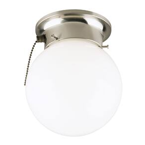 Westinghouse 6720800 Luminária de teto interior de uma luz embutida com corrente de puxar, acabamento em níquel escovado com globo de vidro branco,