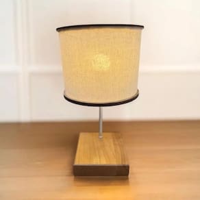 Cúpula: MDF laminado (Freijó), com detalhes em acetato e acabamento em tecido.