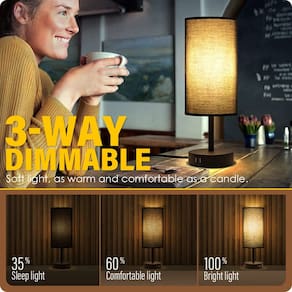 Conjunto de 2 candeeiros de mesa com controle de toque USB de cabeceira Yarra-Decor Tipo de lâmpada: controle de toque Perfeito para: estudo, quarto, sala de estar, dormitório estudantil, escritório, quarto infantil Estilo da lâmpada: moderno Acabamento: madeira Por que escolher a luminária de mesa da Yarra-Decor ? ? Usando os componentes da melhor qualidade, cada um dos abajur de mesa é muito durável. ? Controle o interruptor com toque fácil. Simples e conveniente o suficiente para ajustar o interruptor de luz com um toque fácil quando deitado na sua cama. Base sólida e tapete antiderrapante. Evite arranhões óbvios causados pelo atrito entre a lâmpada e a mesa. ? Mantenha sua mesa limpa Carregue seu celular, tablet e outros dispositivos eletrônicos livremente por suas portas de carregamento duplas. ?Especificações: Tipo de lâmpada: lâmpada Edison Tipo de interruptor: controle de toque Fonte de alimentação: AC Brilho: 800 Lm de brilho Potência: 60W máx. Porta de carregamento USB: 5V/2.1A Plug: plugue padrão dos EUA Temperatura da cor: 2700K branco quente Material da cúpula: linho Vida útil: mais de 25.000 horas ?O pacote inclui: 1 luminária de mesa com plugue americano. 1 lâmpada LED branca quente E26 1 x manual do utilizador (sem garantia ? Dicas quentes - Corte a fonte de alimentação antes da instalação para sua segurança. - Usando o produto em ambiente de trabalho de tensão de 110 – 120 V. - Antes de acender a lâmpada, insira o plugue na tomada. - ???Controle de toque regulável suave de 3 vias?- O candeeiro de mesa de cabeceira regulável oferece três níveis de opções de brilho (baixo, médio e alto). Basta tocar em qualquer lugar na base de metal para ajustar a iluminação para atender às suas diferentes necessidades. Uma luz noturna para sono profundo ou amamentação. Uma iluminação de destaque para criar uma atmosfera aconchegante. Brilho confortável suficiente para estudar ou trabalhar. É super prático de operar. - ???Portas de carregamento USB práticas?- O candeeiro de mesa USB Yarra-Decor possui duas portas de carregamento USB integradas (5V/2,1A) que permitem carregar seus telefones celulares, kindles, fones de ouvido, difusor, alto-falantes ou outros eletrônicos enquanto a lâmpada está ligada ou desligada. É perfeita para aqueles que precisam carregar seus dispositivos em seu quarto ou escritório. - ???Design minimalista para casa?- Este abajur de mesa regulável com controle de toque é pequeno e perfeito para decorar qualquer lugar da sua casa. O candeeiro de mesa USB ideal para a sala de estar, quarto, escritório, quarto das crianças, etc. Com esta adição, sua sala de estar ou quarto ficará um pouco aconchegante e aquecido. - ???Brilho confortável?- nossa pequena luminária de mesa cria uma sensação agradável e reconfortante em casa ao passar tempo com sua família, já que a cortina de tecido de linho suaviza a luz, tornando-a melhor para proteger seus olhos.