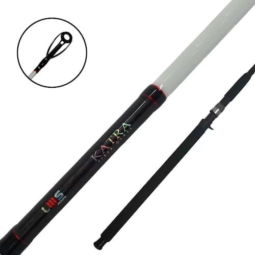 Com acabamento de alta qualidade, as varas KATRA da Lumis agora contam com cabo alongado, que proporciona maior conforto e empunhadura. São fabricadas em fibra de vidro, com revestimento de fibra de carborno, proporcionando ao material, maior leveza, durabilidade e resistência. Cabo em EVA antiderrapante, garante segurança na fisgada e na empunhadura.