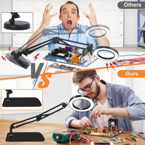- Base de metal atualizada e ampliação de 10x: ampliação de até 1000% (10X) facilita a leitura, costura, reparo, entalhe, manicure, solda, visualização de pequenas impressões. Nossa luz de aumento também vem com uma base retangular de metal resistente e garante que a lupa não tombe.