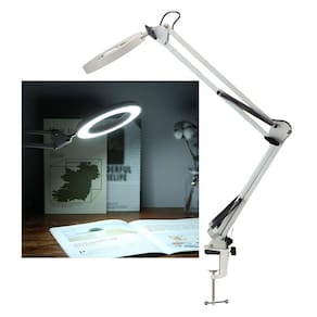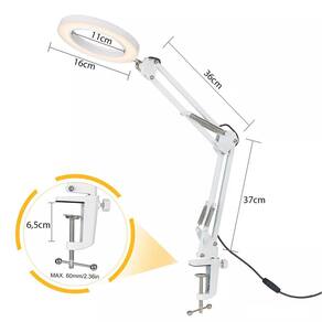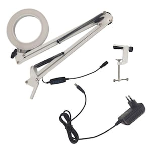 Possui uma lente com 5 dioptria que facilita a observação de detalhes, também possui braço giratório articulável para mobilidade máxima, potente iluminação de led que possui maior durabilidade