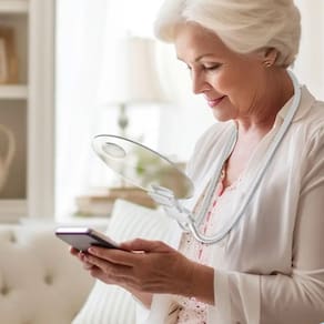 Lupa para leitura realmente libera suas mãos e fornece uma área de visualização ampla e ideal para sua leitura e trabalho.