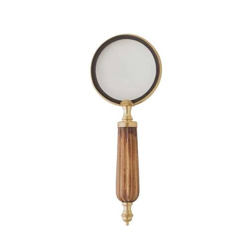 Lupa Decorativa Metal Madeira Dourada Wolff 26x10x2cm