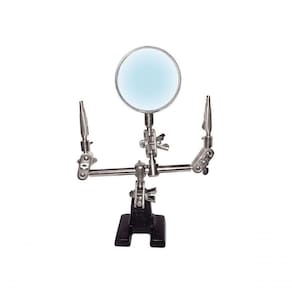 O design inteligente da lupa combina um suporte resistente com pinças ajustáveis, proporcionando estabilidade e controle durante seu uso. Fixe a lupa em qualquer superfície plana e utilize as pinças para segurar objetos pequenos ou delicados com segurança.