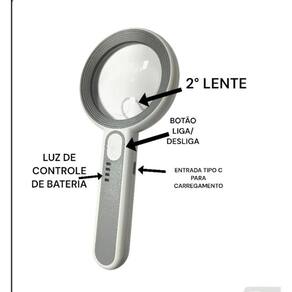 Lupa Zoom 6 e 12x Iluminação 16 Leds Botão Touch Recarregável