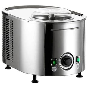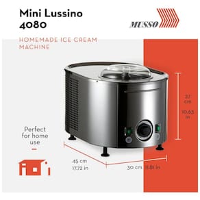 Sorveteira elétrica Lussino, capacidade de 2L, potência de 100W, design em cinza escuro, ideal para preparar sorvete e sorvete.