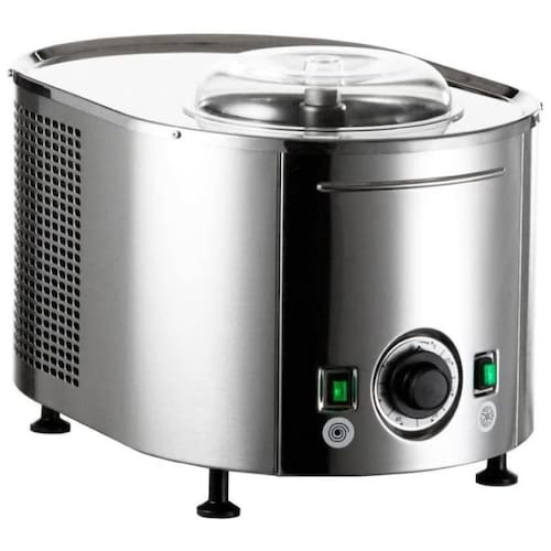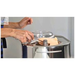 A tigela com capacidade para 1 1 , 2 litros congela 3 litros de sorvete ou sorvete por hora Totalmente automático coloque os ingredientes na tigela, pressione dois botões O cronômetro controla a operação para diferentes confeitos congelados Caixa, tigela, pá feita de aço inoxidável para fácil limpeza de largura, de altura, de profundidade pesa 17 kg