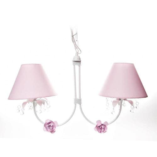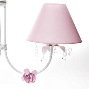 Este lustre vai proporcionar uma iluminação perfeita, tornando o ambiente agradável e aconchegante. Opte por este lustre encantador para realçar a decoração do quarto do bebê. Dados TécnicosLustre de 2 lâmpadas em alumínio com pintura eletrostática branca, cúpulas em acetato forrado com tecido, 2 florzinhas de metal rosa e decoração com gotas de acrílico. Lâmpadas SuportadasEconômicas/ Led: Qualquer LâmpadaIncandescente amarela : Até 40w por Soquete MedidasLargura: 42 cmAltura: 35 cmCorrente: 25 cm