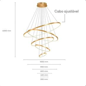 Com LED integrado de 132W e luz branco quente 3000K, proporciona iluminação intensa, uniforme e confortável, cobrindo grandes áreas com eficiência energética. Fabricado em metal com acabamento dourado premium, é resistente à oxidação e possui longa vida útil. Conta com altura ajustável, sistema de fixação reforçado e tensão bivolt, pronto para diferentes projetos decorativos. Acabamento: Alumínio Acompanha Lâmpada: Sim Altura: 40 cm Altura Regulável: Sim Ambiente de Iluminação: Interno Ambiente Principal: Sala de Estar Comprimento: 40 cm Cor: Dourado Cor do Acabamento: Dourado Cor do Produto: Dourado Cor Predominante: Dourado Diâmetro: 100 cm Formato: Redondo Garantia do Fornecedor: 03 meses Largura: 40 cm Manual de Montagem e Instalação: https://product-hub-prd.madeiramadeira.com.br/400715880/documents/3f233b5d-4860-40fe-bff4-ffd8fda89c763404417685117716128707591.pdf Marca: WAY Material Principal: Alumínio Necessita Montagem: Sim Número de Braços: 05 Número de Lâmpadas: 05 Origem do Produto: Importado Peso: 1,6 kg Potência: 132 W Potência Máxima da Lâmpada: 132W Profundidade: 20 cm Quantidade de Itens: 1 Referência do Produto: 192008 Tipo de Iluminação: Destaque Tipo de Luminária: Pendente Voltagem: Bivolt Automático
