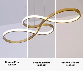 O lustre possiu três temperaturas de cor: Branco Frio, Neutro e Branco Quente. Para fazer a mudança das temperaturas de cor basta desligar e ligar o interruptor do seu próprio ambiente. Altura do lustre é regulável.