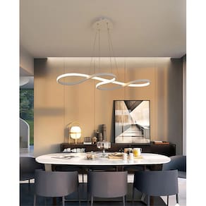 O lustre possiu três temperaturas de cor: Branco Frio, Neutro e Branco Quente. Para fazer a mudança das temperaturas de cor basta desligar e ligar o interruptor do seu próprio ambiente. Altura do lustre é regulável.