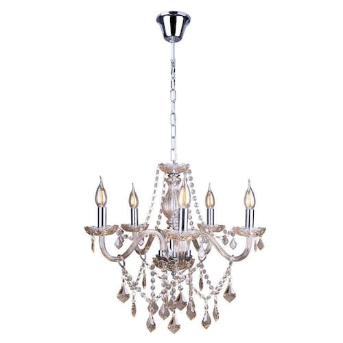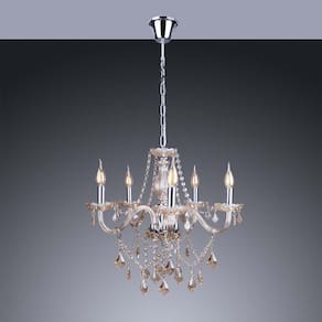 Lustre Candelabro de Cristal Legítimo France Nice 5 braços E14 Cristal: Champagne Voltagem: 110V/220V Lustre Candelabro de Cristal Legítimo France Nice 5 braços E14 Seguindo o estilo clássico, o Lustre France Nice acrescenta sofisticação e elegância ao seu projeto de iluminação. Seus detalhes delicados e charmosos são de fácil harmonização com qualquer decoração. Feito com material de ótima qualidade Durabilidade e resistência são qualidades notáveis no Lustre France Nice. Informações Técnicas Cores Disponíveis (conforme disponibilidade em estoque)Transparente - ChampagneDimensões do produto84cm de altura total - 53cm de diâmetroPeso do produto3,045Altura ajustávelSimTipo de SoqueteE14Quantidade de Lâmpadas Necessárias05Potência Máxima por Lâmpada40wAcompanha LâmpadaNãoMaterialVidro e CristalNecessita MontagemSimUsoTetoTensãoBivoltGarantia90 dias após emissão da nota fiscal ao consumidor Para que serve: a linha France Nice faz tanto sucesso que sempre está entre as TOPs vendas. O design da linha Maria Thereza, único e sofisticado, com cristais legítimos e verdadeiros, você também encontra na linha Cristal France Nice que além de ser uma peça com uma iluminação de boa qualidade é uma acessório de decoração que vale a pena. Onde colocar: Imagina só esse lustre na sua sala de jantar ou na sua sala de estar Impossível não se apaixonar, se o ambiente for entre pequeno e médio a peça ficará perfeita. Ao contrário do que muitas pessoas pensam os lustres candelabros também podem ser usado em quartos de casais, quarto de solteiro, varandas gourmets, banheiros e principalmente em quartos infantis e de bebê. Nada melhor do que um lustre digno de princesa no quarto de uma menina. Dicas Práticas: para causar a sensação de amplitude no ambiente escolha lâmpadas de temperatura fria/branca, mas se o objetivo for criar um ambiente de relaxamento e calmaria opte por lâmpadas na temperatura quente/amarela Cuidados: limpar com pano seco e não utilizar produtos abrasivos