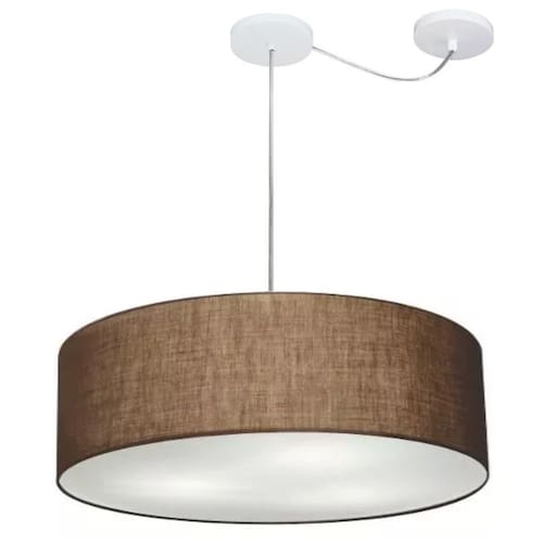 Lustre Cilíndrico C/ Desvio De Centro Md-4259 Cúpula Tecido 50x15cm Café