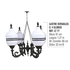 01 Lustre Colonial Versailes Com Corrente em Alumínio 04 Globos