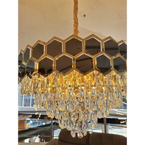 Transforme seu ambiente com um toque de sofisticação! Este lustre com estrutura metálica dourada e acabamento em cristais traz brilho e requinte para salas de jantar, halls de entrada e ambientes de destaque. O design em camadas com detalhes hexagonais cria um efeito visual impactante e luxuoso.