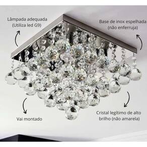 Lustre cristal moderno 30x30cm elegante para sala e quarto Não acompanha as lâmpadas Descrição Deixe seu ambiente mais sofisticado e elegante com este lindo lustre de cristal moderno. Ideal para salas, quartos, halls e espaços que merecem um toque de luxo. tamanho da base: 30 cm x 30 cm altura total: 25 cm material: cristal k9 de alta qualidade e base em aço inox em aço inox espelhado,argolas em aço inox design moderno: correntes com de cristal que refletem a luz, criando um efeito brilhante e luxuoso acabamento premium: brilho intenso e detalhes refinados que valorizam a decoração compatível com lâmpadas led ou halógenas modelo de lâmpada: g9 halopim - transforme seu ambiente com muito charme e sofisticação O produto é novo Sim, todos os produtos são novos. Caso o produto não supra minha necessidade posso devolver ou trocar O produto tem Sim, todos os produtos têm . Se ainda houver alguma dúvida estamos a disposição para responder de segunda-feira a sexta-feira das 08:00 às 17:30. Marca: Não Informado