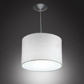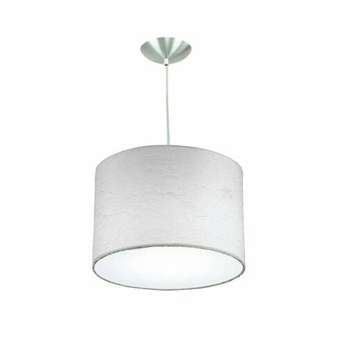 Pendente Dome O Pendente Dome adiciona luxo e sofisticação a sua decoração, Sua aplicação é muito versátil podendo ser instalada em quartos, sala de jantar, sala de estar, varanda, corredores ou onde a imaginação mandar. Nosso pendente é feito em com Tecido e revestimento de Platisco na parte interna, causando um lindo efeito luminoso, Uma peça que vai fechar com chave de ouro a decoração do seu ambiente. É indicada somente para uso interno, Utiliza 1 Lâmpadas E-27 de no máximo 30w cada. ESPECIFICAÇÕES Material: Aluminio/Tecido Indicação: Iluminação e decoração Conteúdo da embalagem: 01 Pendente Dome Dados Técnicos: -Alimentação: Bivolt -Tipo de lâmpada: 1 x E-27. (não inclusas) -Peso Aprox. com embalagem: 0,600kg -Dimensões aprox. do produto 30x20cm (Cupula) -1 Metro de Fio PP Transparente -Soquete de Porcelana -Canopla de Fixação de 12cm de diâmetro. Tampa De Acrilico fosco