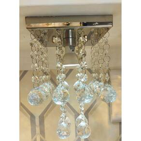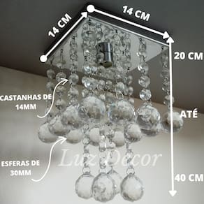 Lustre De Cristais Com Base De Inox Espelhado 14x14cm - Tamanho: 25CM / Voltagem: Bivolt