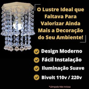 Outro ponto positivo desse produto é sua facilidade de instalação. Enviado montado e pronto para instalação, o lustre pode ser facilmente fixado no teto, dispensando a contratação de um profissional. Além disso, essa luminária é bivolt, ou seja, pode ser utilizada tanto em redes elétricas de 127v quanto de 220v.